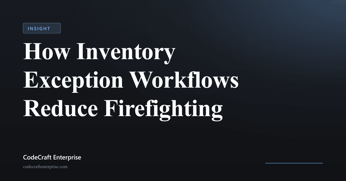 Most inventory firefighting is avoidable — not by predicting exceptions but by handling them through a structured workflow. An alert is not a workflow: it tells someone there is a problem but does not start the process that resolves it. Ownership has to be unambiguous because when two teams might own an exception neither does, open exceptions need a single visible queue so leaders learn about issues before they escalate, and structured capture is what lets recurring patterns be fixed once instead of being re-solved every time.