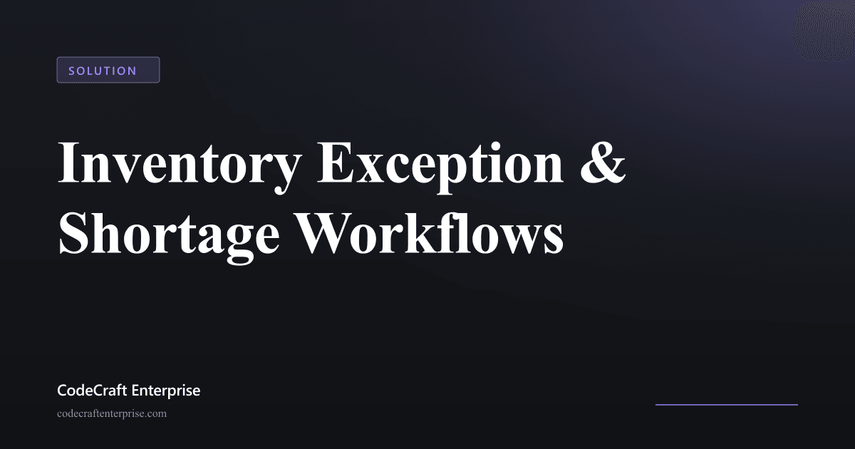 Inventory Exception Shortage Replenishment Systems. A focused capability built by CodeCraft Enterprise for operations-heavy teams.