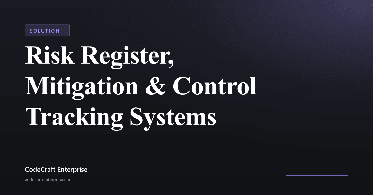 Risk Register Mitigation Control Tracking Systems. A focused capability built by CodeCraft Enterprise for operations-heavy teams.
