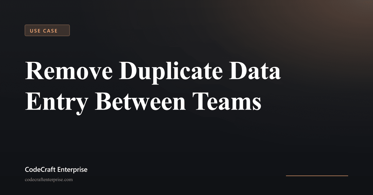 Remove Duplicate Data Entry Between Teams. A focused capability built by CodeCraft Enterprise for operations-heavy teams.